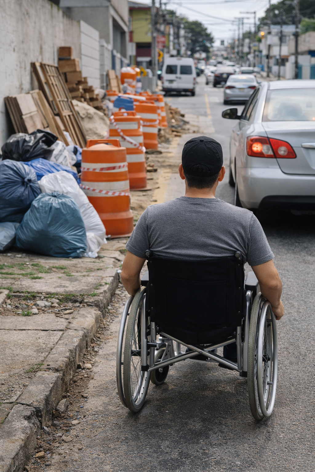 A situação tem afetado especialmente cadeirantes e pessoas com mobilidade reduzida, que muitas vezes são obrigadas a circular no meio da rua, dividindo espaço com veículos.
