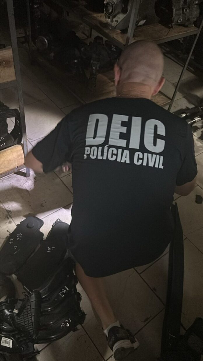 Segundo a Polícia Civil, oito veículos possuíam registro de furto ou roubo. Outros dois estavam com a numeração suprimida, prática utilizada para dificultar a identificação e permitir a comercialização ilegal das peças.