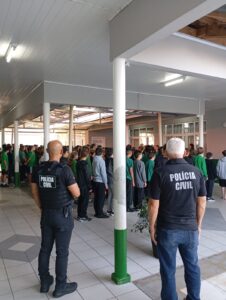 A operação contou com a participação de 407 policiais civis e o uso de 210 viaturas, resultando na visita a 705 escolas em Santa Catarina.