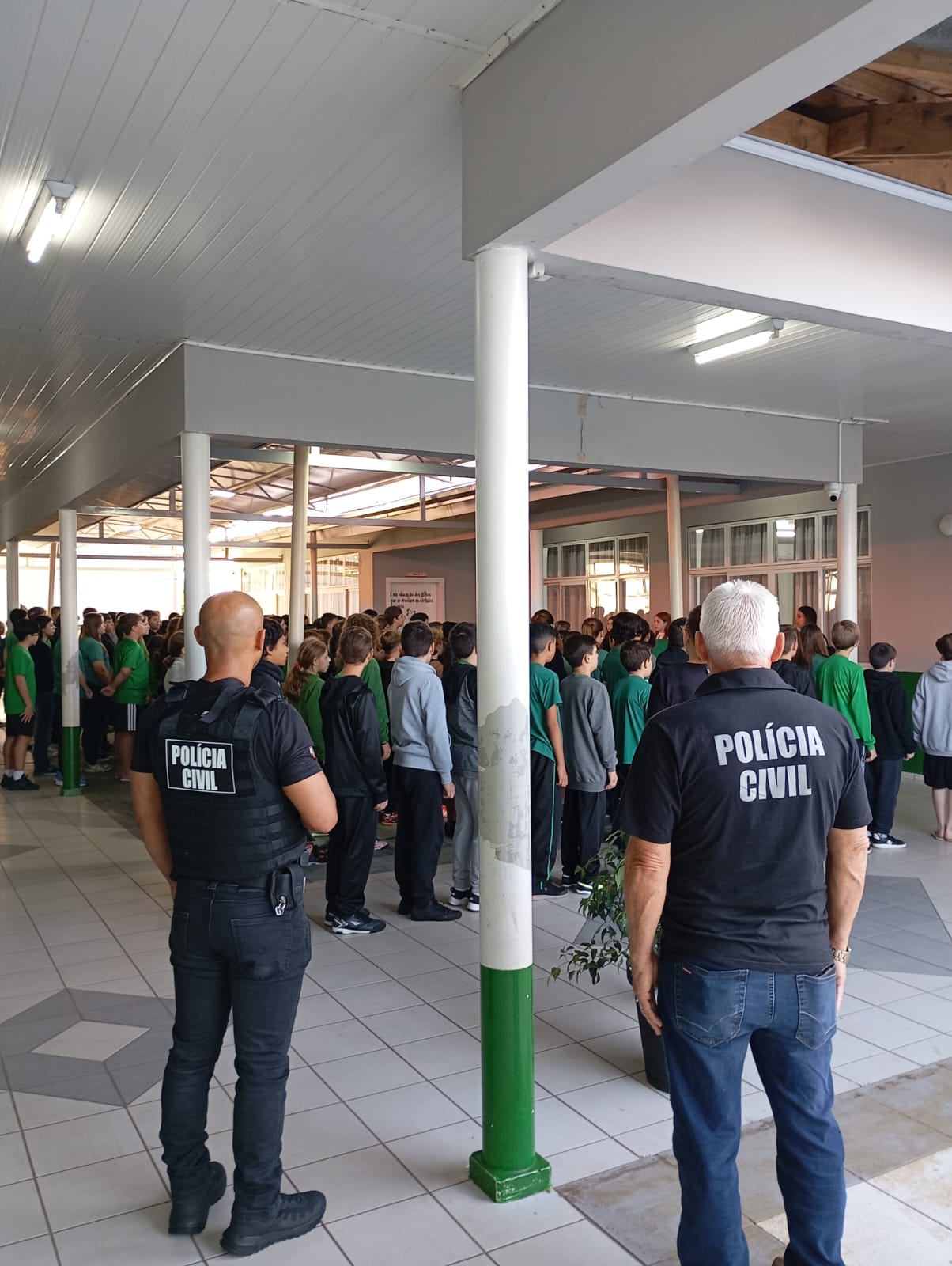 Durante a operação Escola Segura SC, equipes da Polícia Civil estiveram presentes em horários considerados mais vulneráveis, como início das aulas, intervalo do almoço e saída dos estudantes.