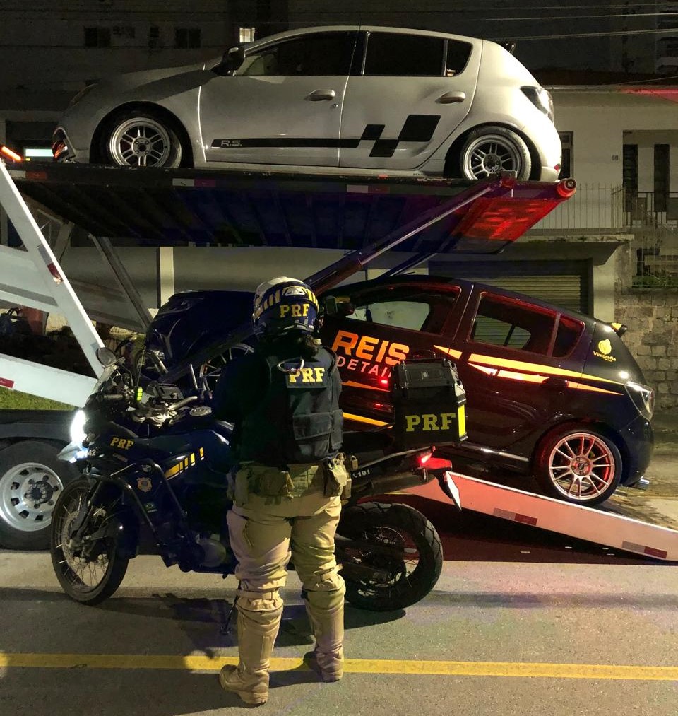 Segundo a PRF, os veículos disputavam corrida em um trecho com sequência de curvas e alto risco de acidentes. Os agentes iniciaram acompanhamento tático por cerca de 10 quilômetros até realizar a abordagem.