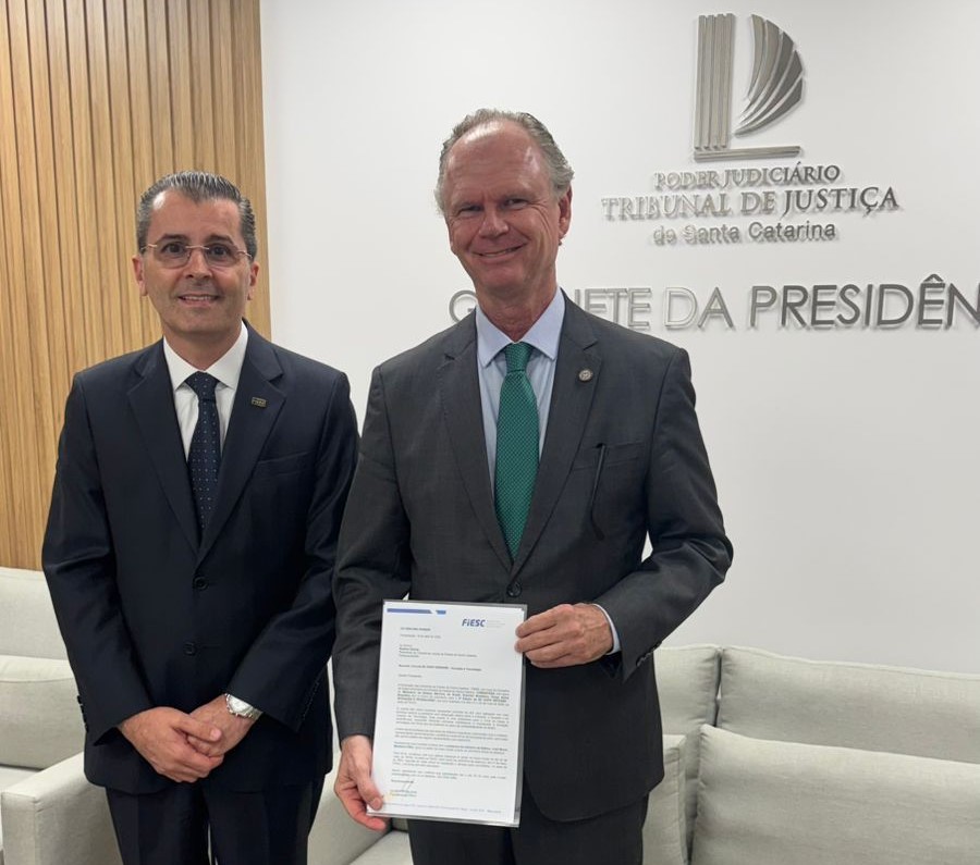Durante visita ao Tribunal de Justiça de Santa Catarina (TJSC), Fretta reuniu-se com o presidente da instituição, Rubens Schulz. O encontro teve como pauta o tratamento tributário de bens intermediários, tema que vem sendo debatido pela Federação.